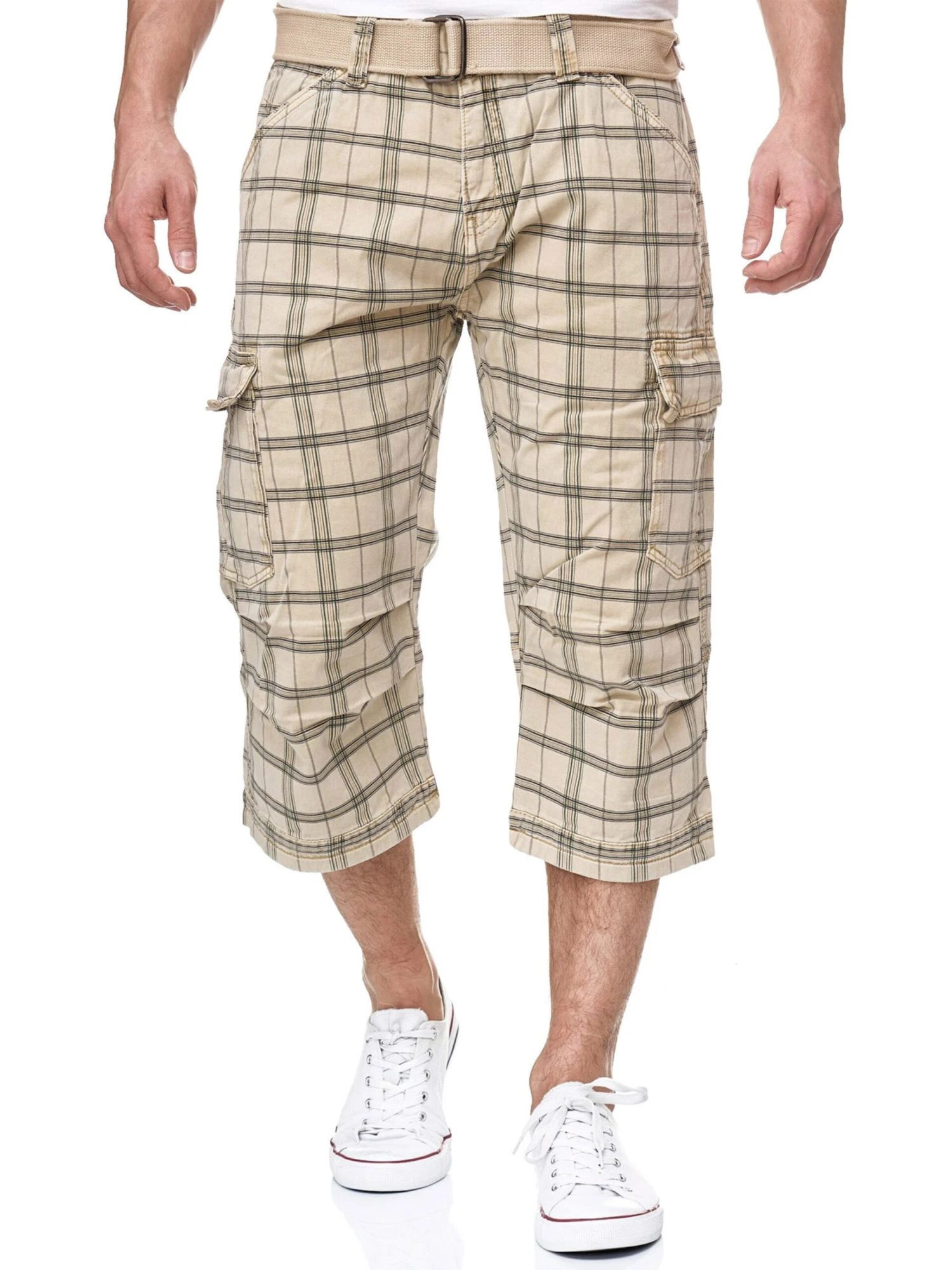 Indicode Jeans Cargo Shorts Regular Cargobroek 70-175 Nicolas Check Heren Beige