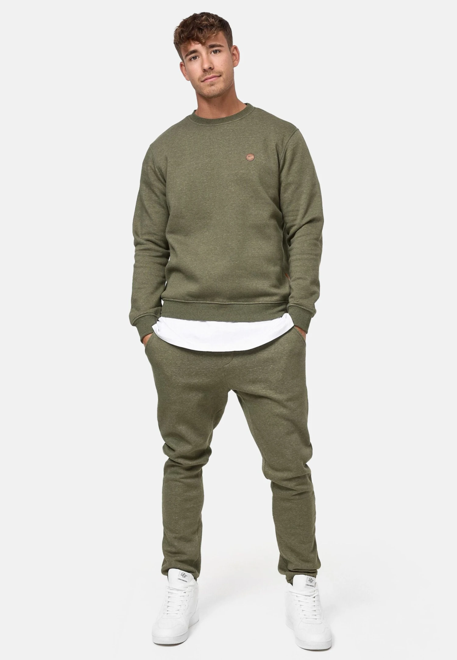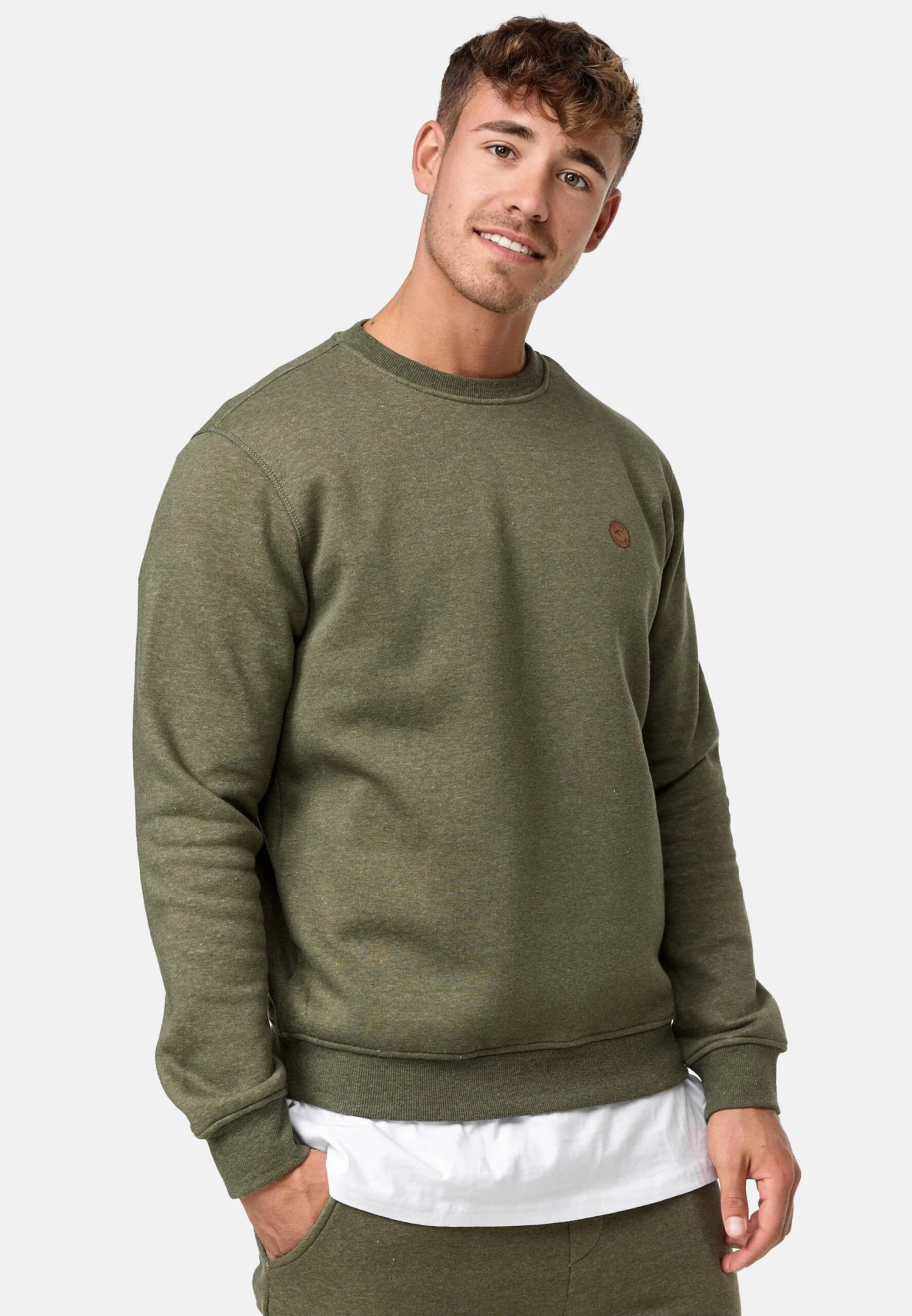 Indicode Jeans Crewneck Truien Trui Luk Heren Groen Gemêleerd