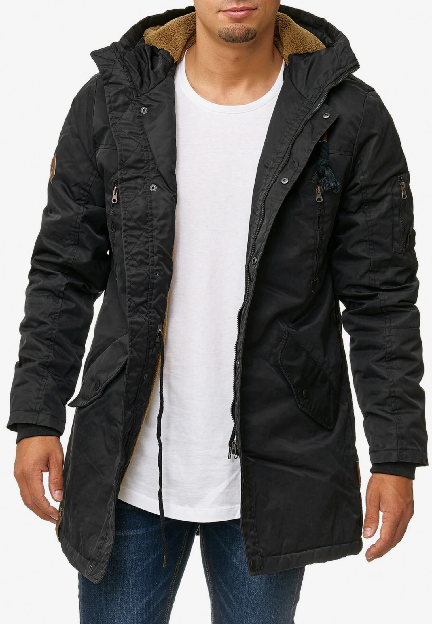 Indicode Jeans Parkas Winterparka Bardsley Heren Zwart