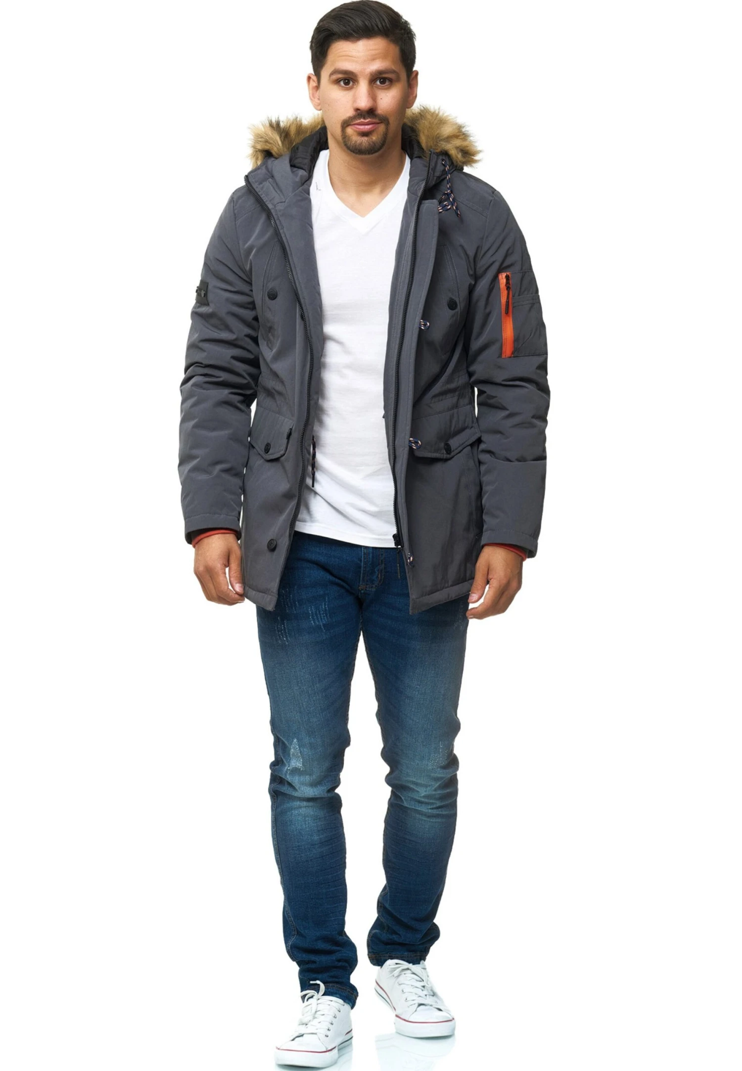 Indicode Jeans Parkas Winterparka Leicester Heren Basaltgrijs